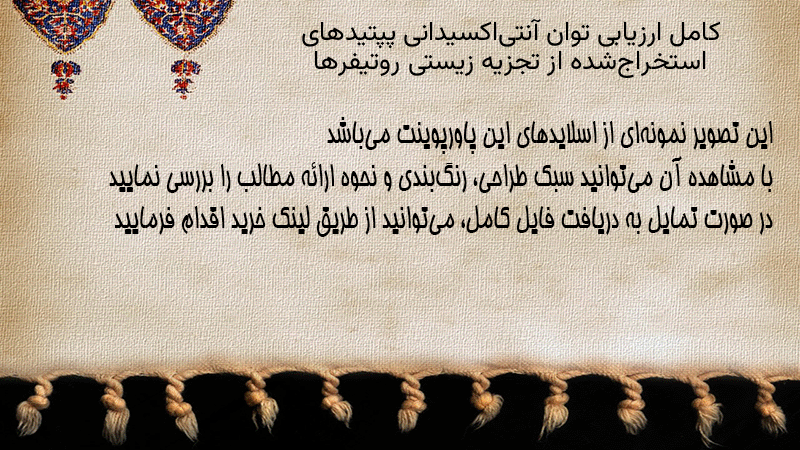 پاورپوینت کامل ارزیابی توان آنتیاکسیدانی پپتیدهای استخراجشده از تجزیه زیستی روتیفرها