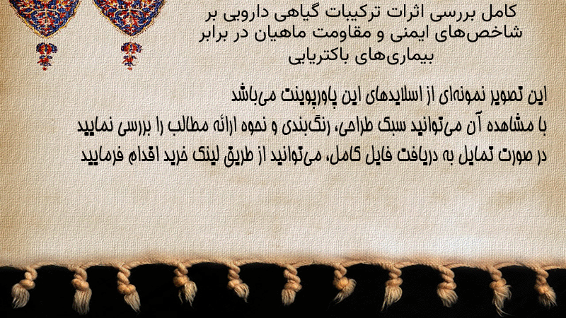 پاورپوینت کامل بررسی اثرات ترکیبات گیاهی دارویی بر شاخصهای ایمنی و مقاومت ماهیان در برابر بیماریهای باکتریایی