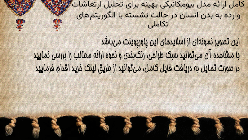 پاورپوینت کامل ارائه مدل بیومکانیکی بهینه برای تحلیل ارتعاشات وارده به بدن انسان در حالت نشسته با الگوریتمهای تکاملی