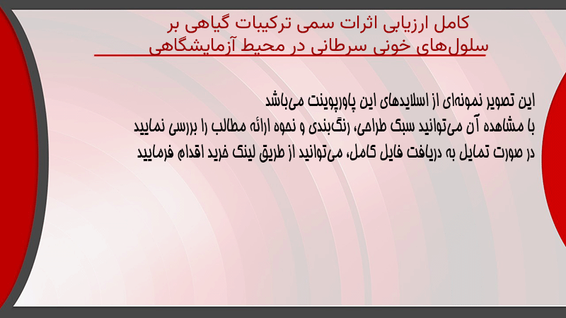 پاورپوینت کامل ارزیابی اثرات سمی ترکیبات گیاهی بر سلولهای خونی سرطانی در محیط آزمایشگاهی