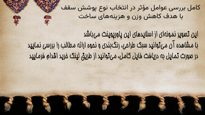 پاورپوینت کامل بررسی عوامل مؤثر در انتخاب نوع پوشش سقف با هدف کاهش وزن و هزینههای ساخت