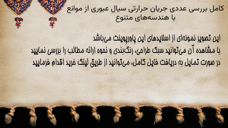 پاورپوینت کامل بررسی عددی جریان حرارتی سیال عبوری از موانع با هندسههای متنوع