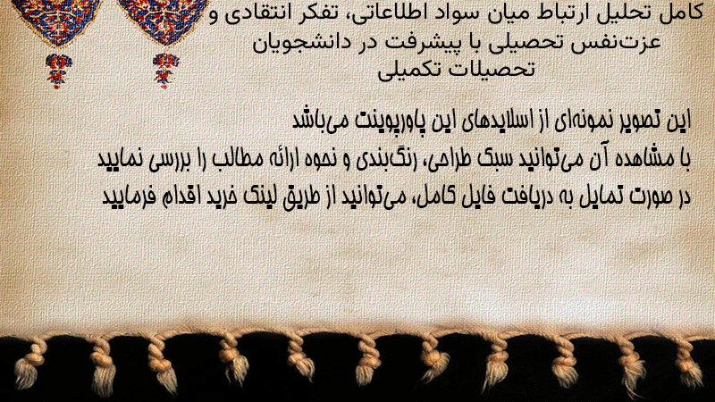 پاورپوینت کامل تحلیل ارتباط میان سواد اطلاعاتی، تفکر انتقادی و عزتنفس تحصیلی با پیشرفت در دانشجویان تحصیلات تکمیلی