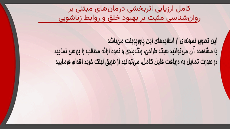 پاورپوینت کامل ارزیابی اثربخشی درمانهای مبتنی بر روانشناسی مثبت بر بهبود خلق و روابط زناشویی