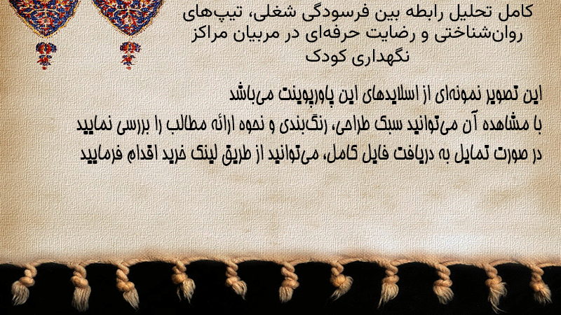 پاورپوینت کامل تحلیل رابطه بین فرسودگی شغلی، تیپهای روانشناختی و رضایت حرفهای در مربیان مراکز نگهداری کودک