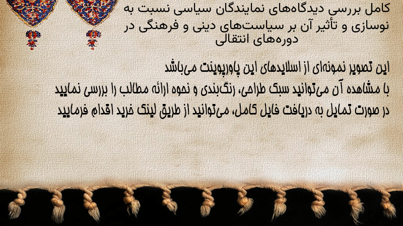 پاورپوینت کامل بررسی دیدگاههای نمایندگان سیاسی نسبت به نوسازی و تأثیر آن بر سیاستهای دینی و فرهنگی در دورههای انتقالی