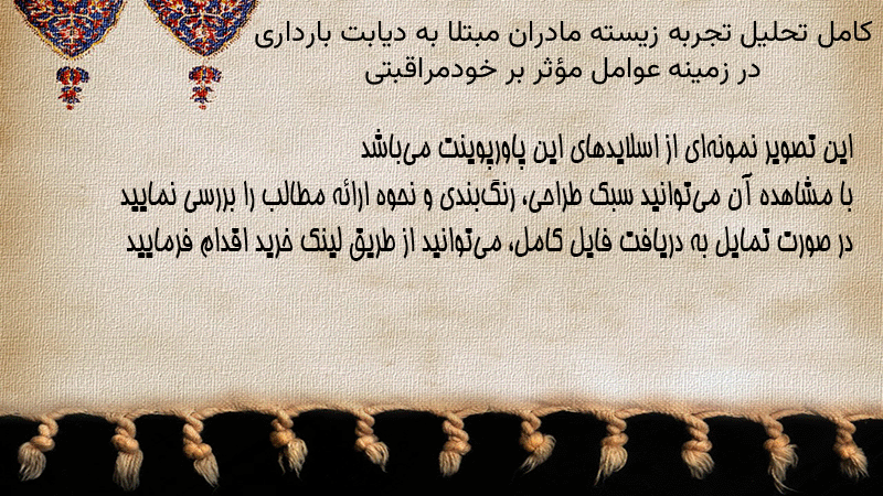 پاورپوینت کامل تحلیل تجربه زیسته مادران مبتلا به دیابت بارداری در زمینه عوامل مؤثر بر خودمراقبتی