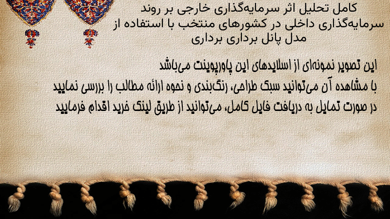 پاورپوینت کامل تحلیل اثر سرمایهگذاری خارجی بر روند سرمایهگذاری داخلی در کشورهای منتخب با استفاده از مدل پانل برداری برداری