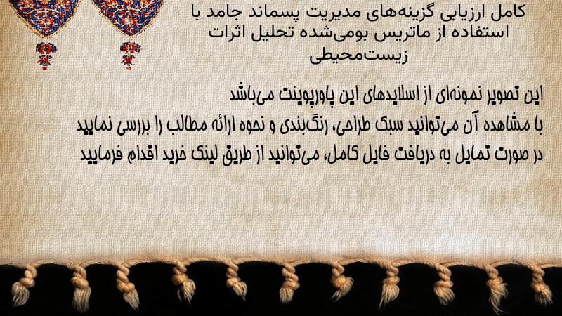 پاورپوینت کامل ارزیابی گزینههای مدیریت پسماند جامد با استفاده از ماتریس بومیشده تحلیل اثرات زیستمحیطی