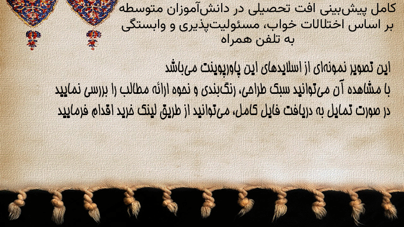 پاورپوینت کامل پیشبینی افت تحصیلی در دانشآموزان متوسطه بر اساس اختلالات خواب، مسئولیتپذیری و وابستگی به تلفن همراه