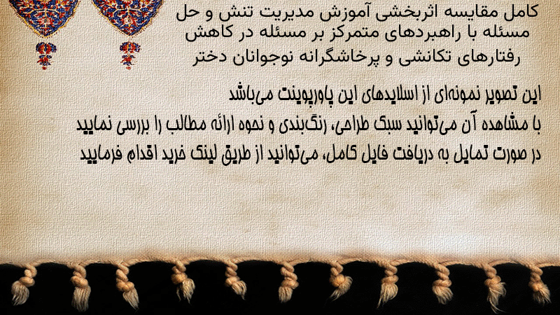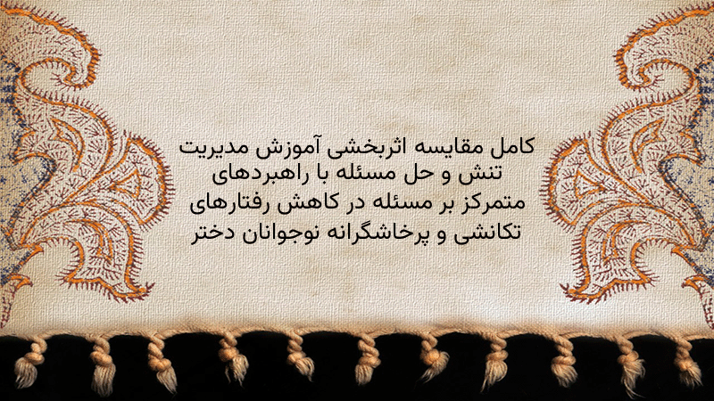 پاورپوینت کامل مقایسه اثربخشی آموزش مدیریت تنش و حل مسئله با راهبردهای متمرکز بر مسئله در کاهش رفتارهای تکانشی و پرخاشگرانه نوجوانان دختر