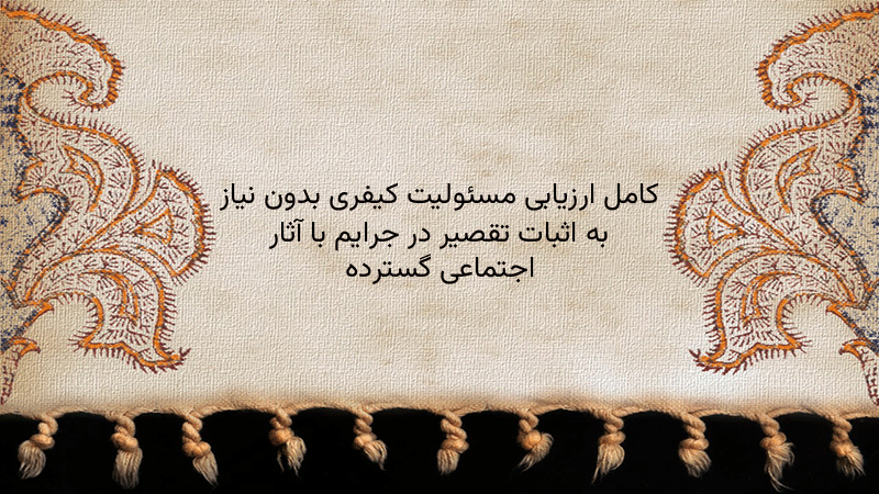 پاورپوینت کامل ارزیابی مسئولیت کیفری بدون نیاز به اثبات تقصیر در جرایم با آثار اجتماعی گسترده