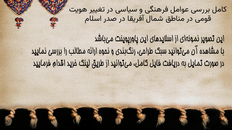 پاورپوینت کامل بررسی عوامل فرهنگی و سیاسی در تغییر هویت قومی در مناطق شمال آفریقا در صدر اسلام