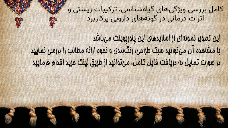 پاورپوینت کامل بررسی ویژگیهای گیاهشناسی، ترکیبات زیستی و اثرات درمانی در گونههای دارویی پرکاربرد