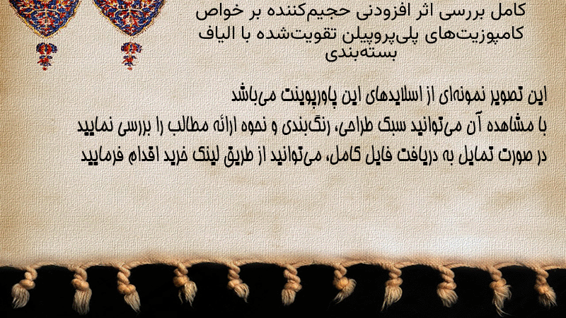 پاورپوینت کامل بررسی اثر افزودنی حجیمکننده بر خواص کامپوزیتهای پلیپروپیلن تقویتشده با الیاف بستهبندی