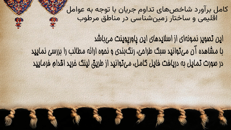 پاورپوینت کامل برآورد شاخصهای تداوم جریان با توجه به عوامل اقلیمی و ساختار زمینشناسی در مناطق مرطوب
