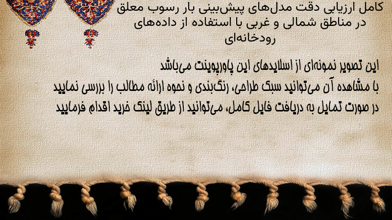 پاورپوینت کامل ارزیابی دقت مدلهای پیشبینی بار رسوب معلق در مناطق شمالی و غربی با استفاده از دادههای رودخانهای