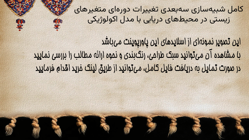 پاورپوینت کامل شبیهسازی سهبعدی تغییرات دورهای متغیرهای زیستی در محیطهای دریایی با مدل اکولوژیکی