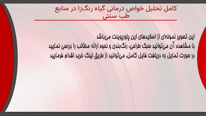 پاورپوینت کامل تحلیل خواص درمانی گیاه رنگزا در منابع طب سنتی