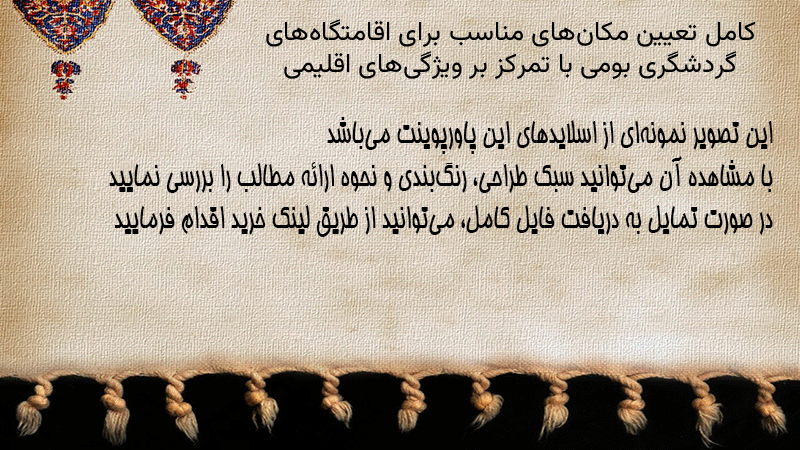 پاورپوینت کامل تعیین مکانهای مناسب برای اقامتگاههای گردشگری بومی با تمرکز بر ویژگیهای اقلیمی