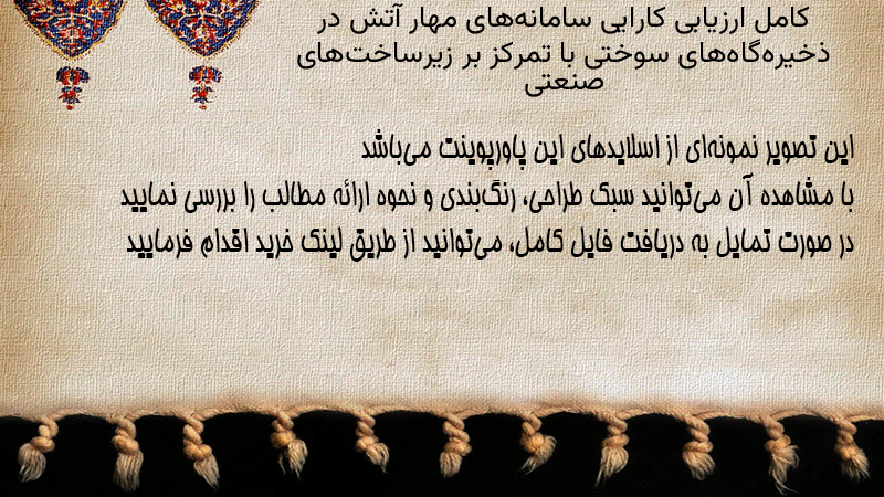 پاورپوینت کامل ارزیابی کارایی سامانههای مهار آتش در ذخیرهگاههای سوختی با تمرکز بر زیرساختهای صنعتی