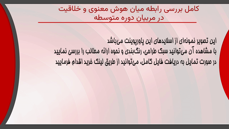 پاورپوینت کامل بررسی رابطه میان هوش معنوی و خلاقیت در مربیان دوره متوسطه