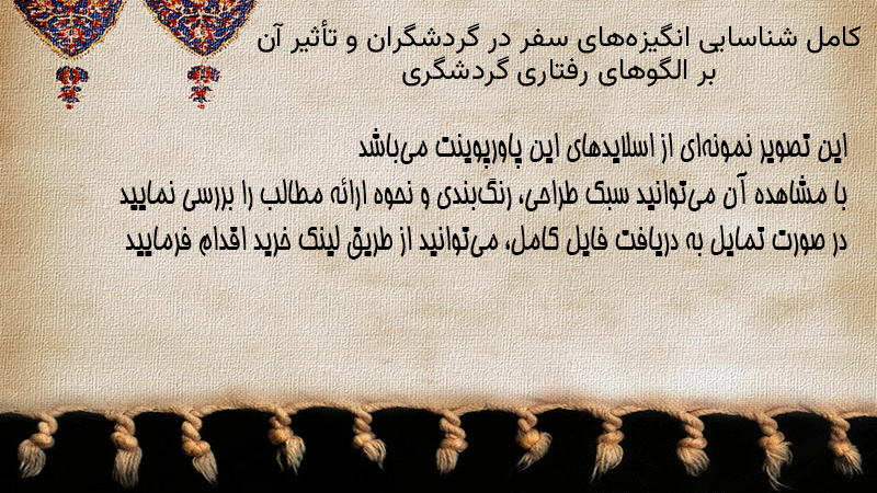 پاورپوینت کامل شناسایی انگیزههای سفر در گردشگران و تأثیر آن بر الگوهای رفتاری گردشگری