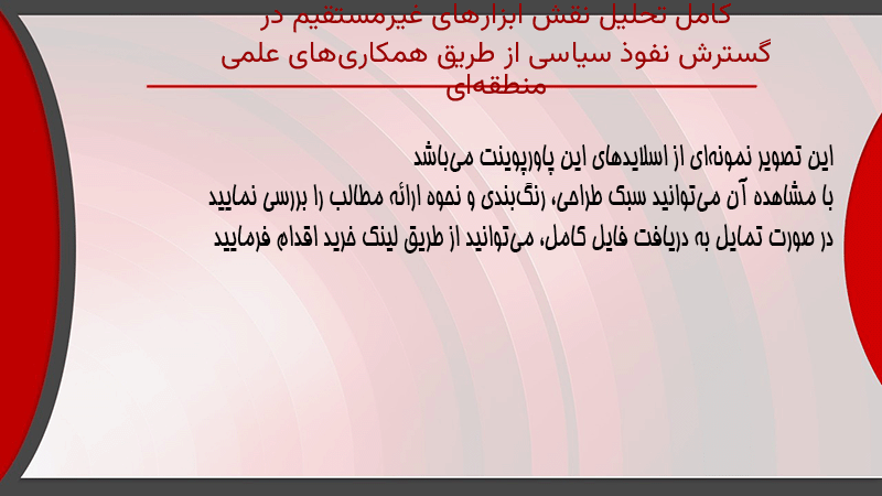 پاورپوینت کامل تحلیل نقش ابزارهای غیرمستقیم در گسترش نفوذ سیاسی از طریق همکاریهای علمی منطقهای