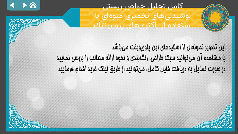 پاورپوینت کامل تحلیل خواص زیستی نوشیدنیهای تخمیری میوهای با استفاده از باکتریهای پروبیوتیک