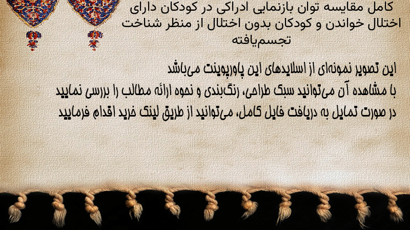 پاورپوینت کامل مقایسه توان بازنمایی ادراکی در کودکان دارای اختلال خواندن و کودکان بدون اختلال از منظر شناخت تجسمیافته