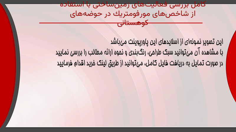 پاورپوینت کامل بررسی فعالیتهای زمینساختی با استفاده از شاخصهای مورفومتریک در حوضههای کوهستانی