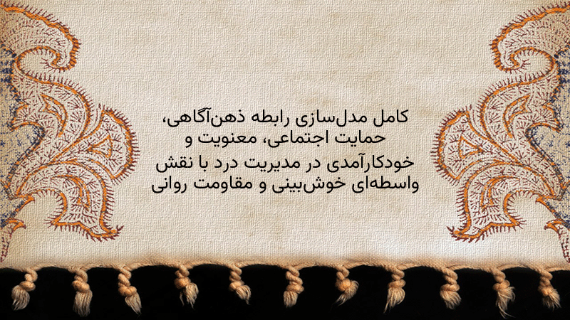 پاورپوینت کامل مدلسازی رابطه ذهنآگاهی، حمایت اجتماعی، معنویت و خودکارآمدی در مدیریت درد با نقش واسطهای خوشبینی و مقاومت روانی