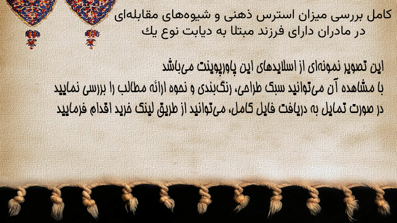پاورپوینت کامل بررسی میزان استرس ذهنی و شیوههای مقابلهای در مادران دارای فرزند مبتلا به دیابت نوع یک