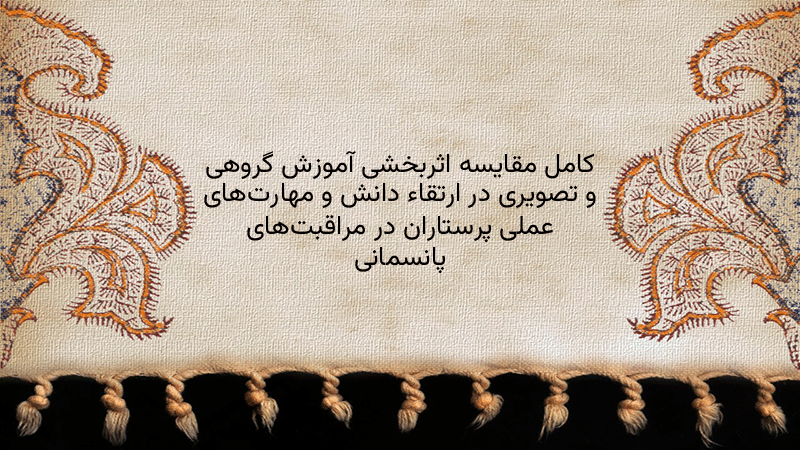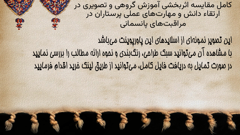 پاورپوینت کامل مقایسه اثربخشی آموزش گروهی و تصویری در ارتقاء دانش و مهارتهای عملی پرستاران در مراقبتهای پانسمانی