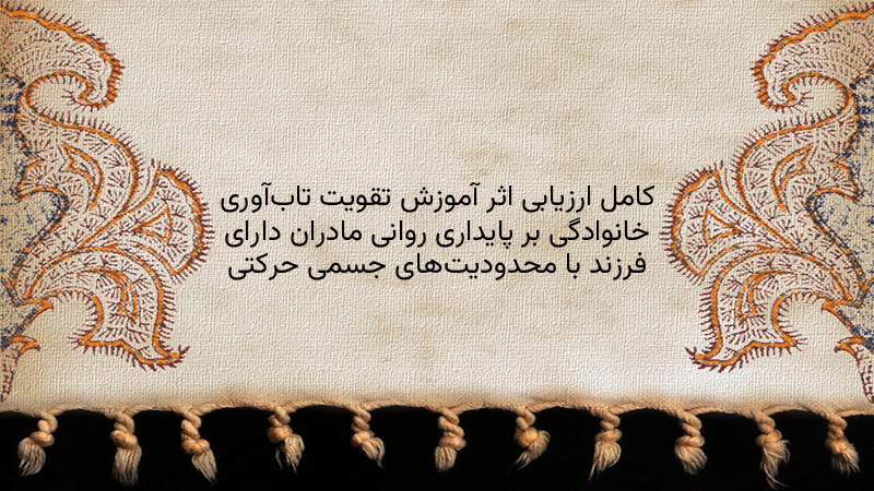 پاورپوینت کامل ارزیابی اثر آموزش تقویت تابآوری خانوادگی بر پایداری روانی مادران دارای فرزند با محدودیتهای جسمی حرکتی