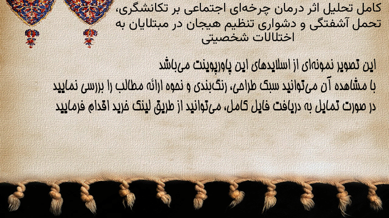 پاورپوینت کامل تحلیل اثر درمان چرخهای اجتماعی بر تکانشگری، تحمل آشفتگی و دشواری تنظیم هیجان در مبتلایان به اختلالات شخصیتی
