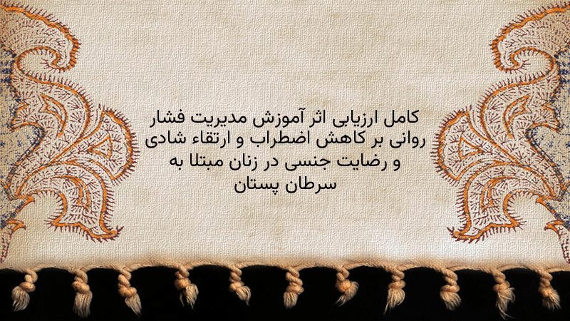 پاورپوینت کامل ارزیابی اثر آموزش مدیریت فشار روانی بر کاهش اضطراب و ارتقاء شادی و رضایت جنسی در زنان مبتلا به سرطان پستان