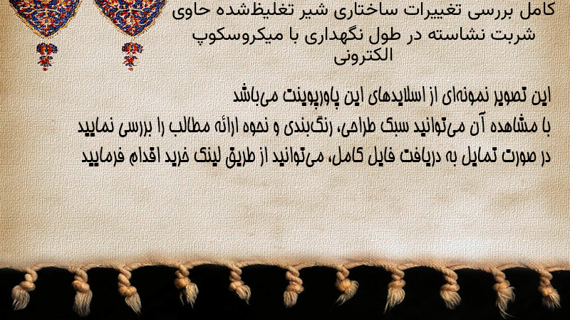 پاورپوینت کامل بررسی تغییرات ساختاری شیر تغلیظشده حاوی شربت نشاسته در طول نگهداری با میکروسکوپ الکترونی