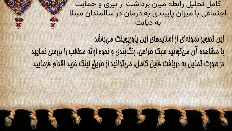 پاورپوینت کامل تحلیل رابطه میان برداشت از پیری و حمایت اجتماعی با میزان پایبندی به درمان در سالمندان مبتلا به دیابت
