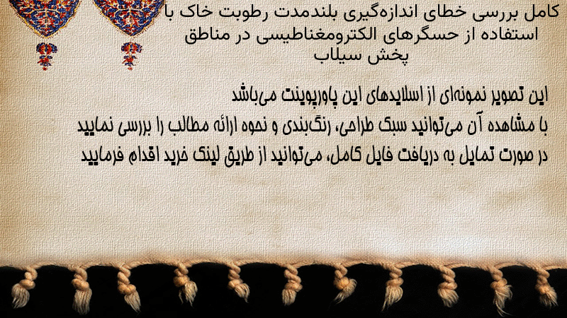 پاورپوینت کامل بررسی خطای اندازهگیری بلندمدت رطوبت خاک با استفاده از حسگرهای الکترومغناطیسی در مناطق پخش سیلاب