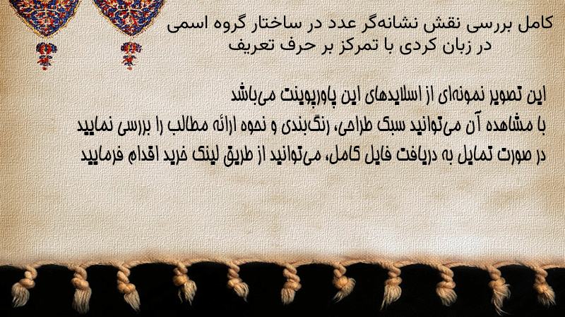 پاورپوینت کامل بررسی نقش نشانهگر عدد در ساختار گروه اسمی در زبان کردی با تمرکز بر حرف تعریف