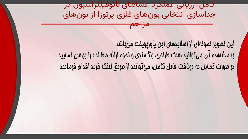 پاورپوینت کامل ارزیابی عملکرد غشاهای نانوفیلتراسیون در جداسازی انتخابی یونهای فلزی پرتوزا از یونهای مزاحم