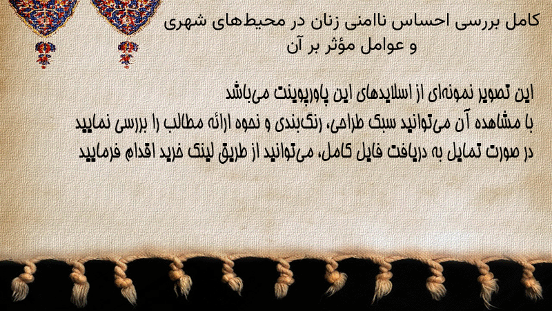 پاورپوینت کامل بررسی احساس ناامنی زنان در محیطهای شهری و عوامل مؤثر بر آن