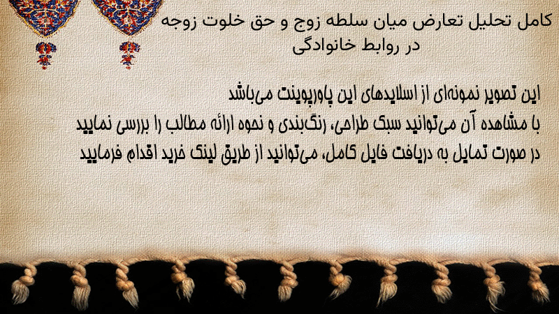 پاورپوینت کامل تحلیل تعارض میان سلطه زوج و حق خلوت زوجه در روابط خانوادگی