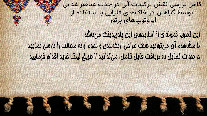 پاورپوینت کامل بررسی نقش ترکیبات آلی در جذب عناصر غذایی توسط گیاهان در خاکهای قلیایی با استفاده از ایزوتوپهای پرتوزا