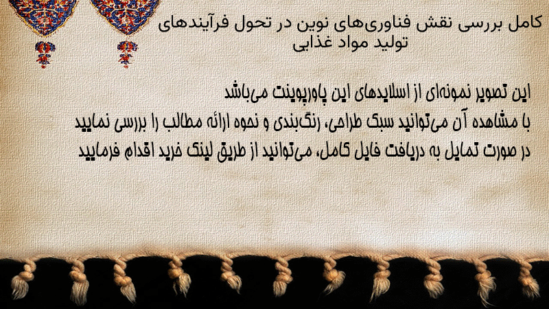 پاورپوینت کامل بررسی نقش فناوریهای نوین در تحول فرآیندهای تولید مواد غذایی