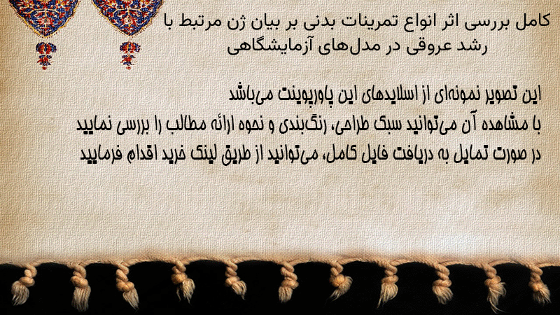 پاورپوینت کامل بررسی اثر انواع تمرینات بدنی بر بیان ژن مرتبط با رشد عروقی در مدلهای آزمایشگاهی