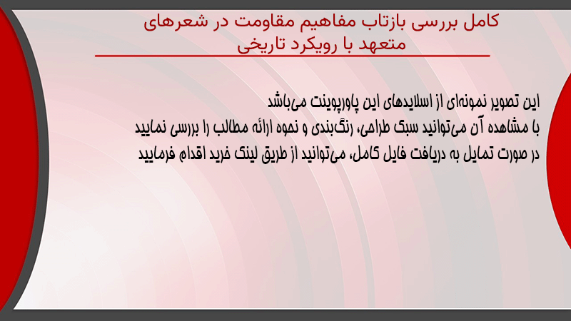 پاورپوینت کامل بررسی بازتاب مفاهیم مقاومت در شعرهای متعهد با رویکرد تاریخی