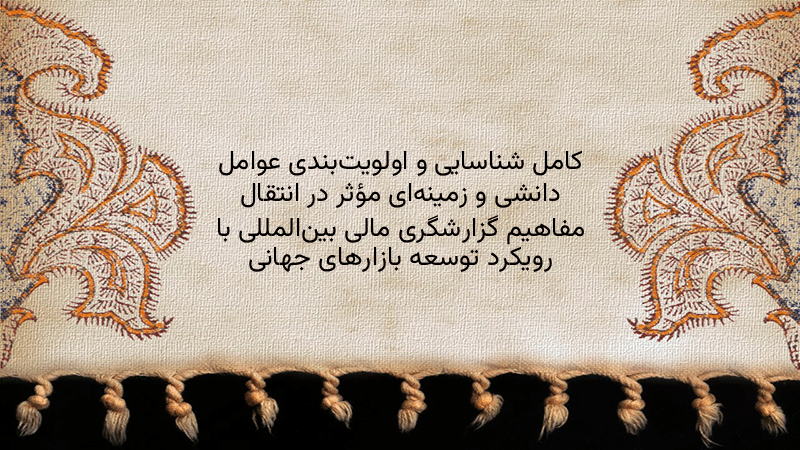 پاورپوینت کامل شناسایی و اولویتبندی عوامل دانشی و زمینهای مؤثر در انتقال مفاهیم گزارشگری مالی بینالمللی با رویکرد توسعه بازارهای جهانی
