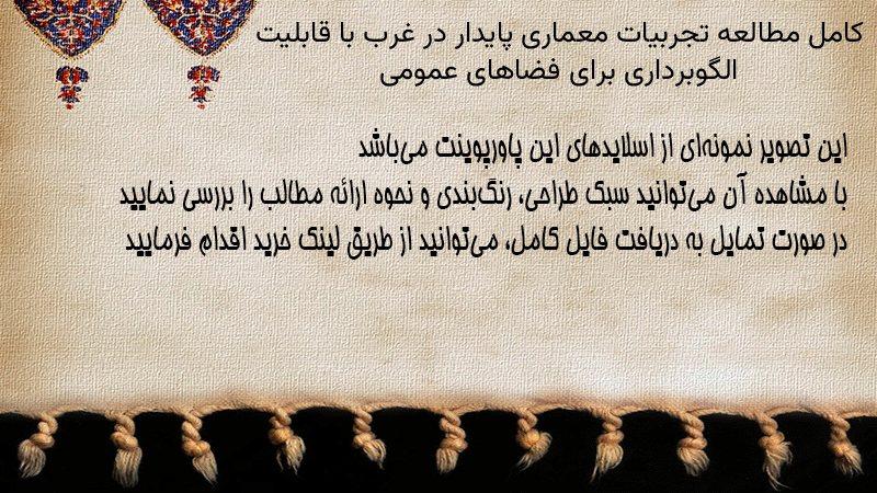 پاورپوینت کامل مطالعه تجربیات معماری پایدار در غرب با قابلیت الگوبرداری برای فضاهای عمومی